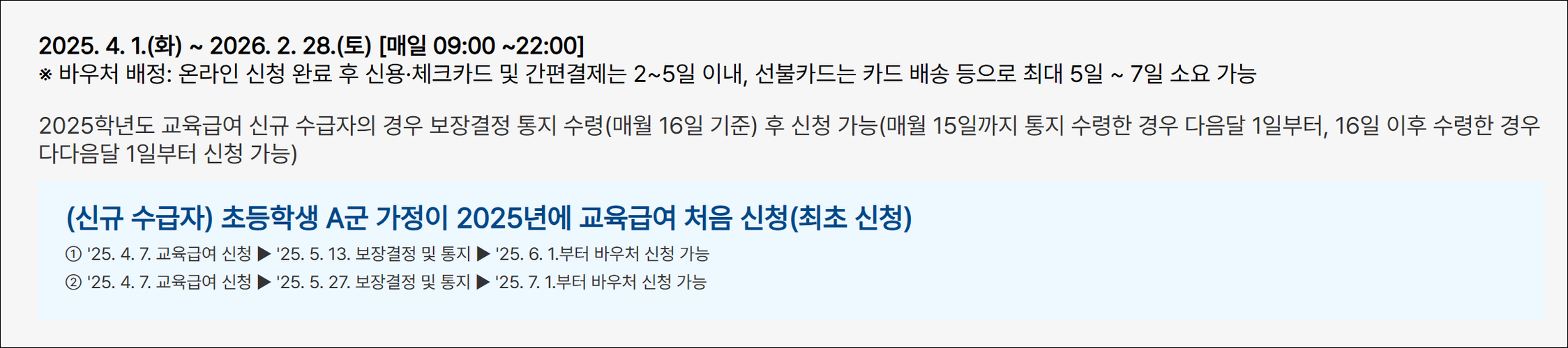 교육급여 바우처 지급일과 사용기간