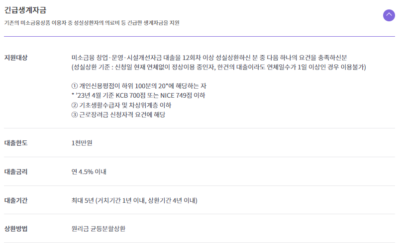 미소금융대출 긴급생계자금