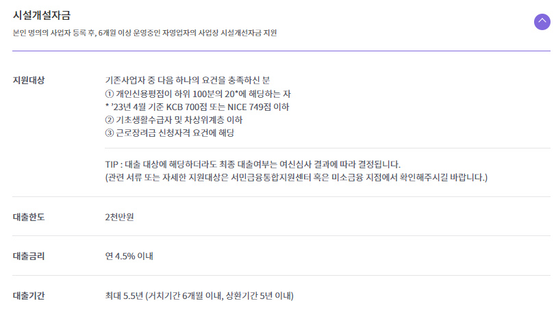 미소금융 대출 시설개설자금