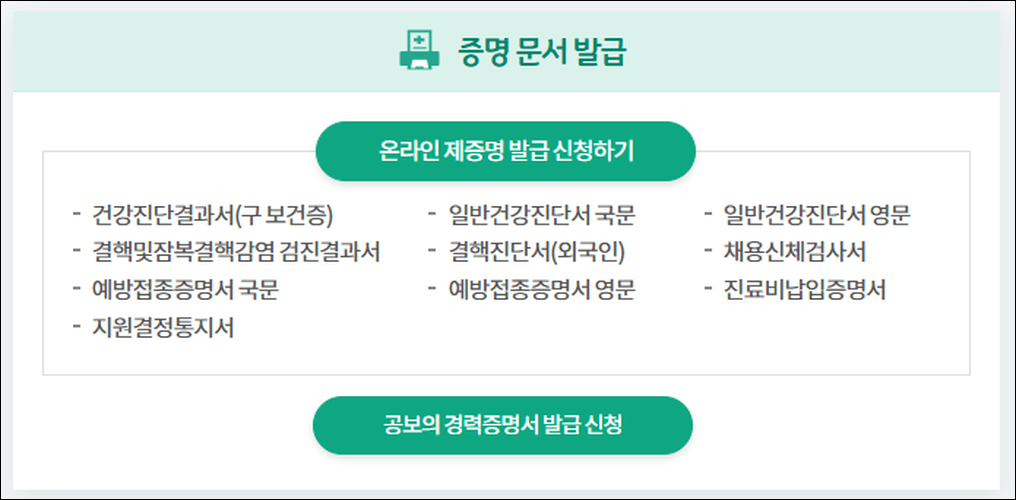 - 결핵 및 잠복결핵감염 검진 결과서 (일부 항목은 오프라인 발급만 가능)