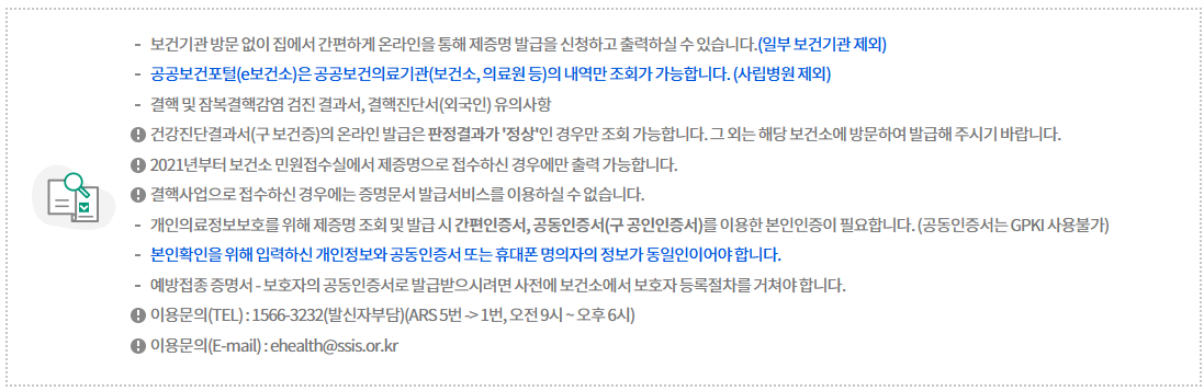 - 결핵사업 등 특별 접수 건 해당 건은 인터넷 발급이 제한되며, 오프라인으로만 처리됩니다.