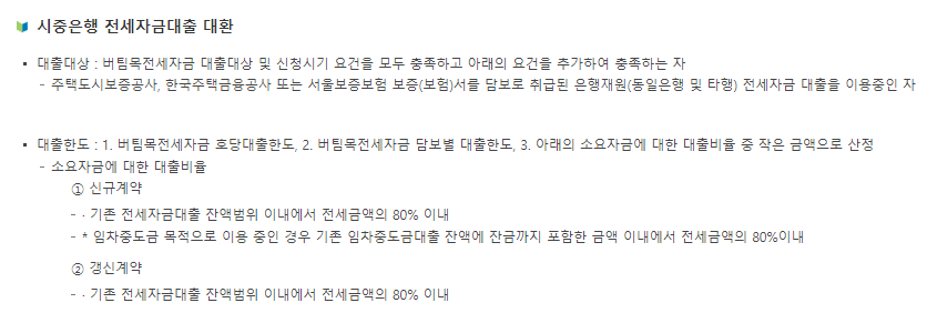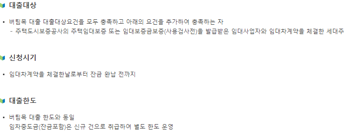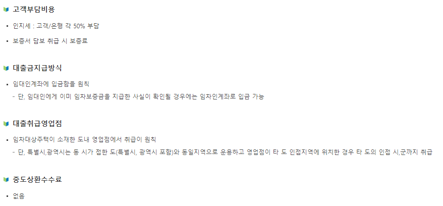 - 대출 대상: 주택임대차계약 체결 및 임차보증금의 5% 이상 지불자, 무주택 세대주 및 세대원, 기타 전세자금대출 미이용자.