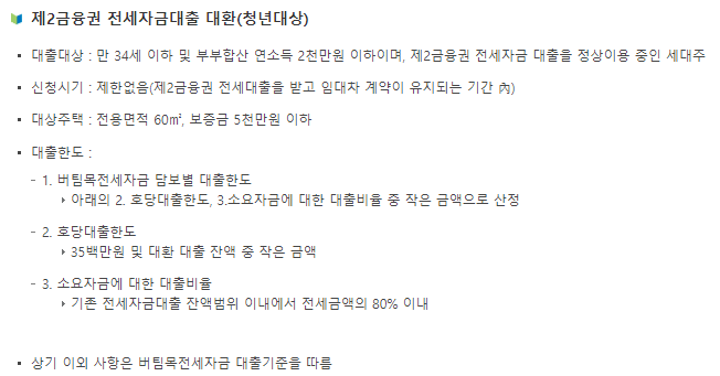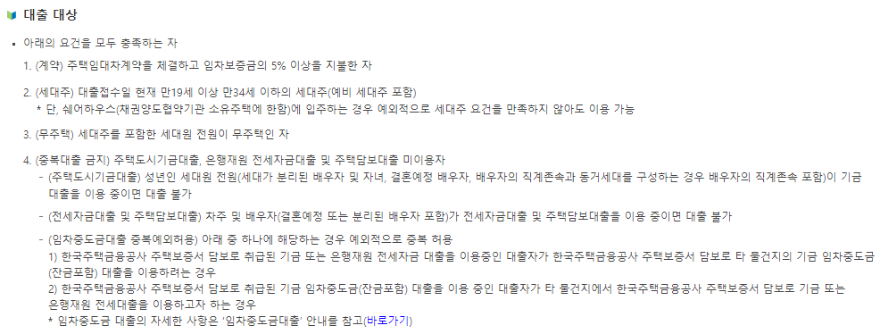 - 임차보증금: 대출 대상 주택의 임차보증금은 3억원 이하여야 합니다.